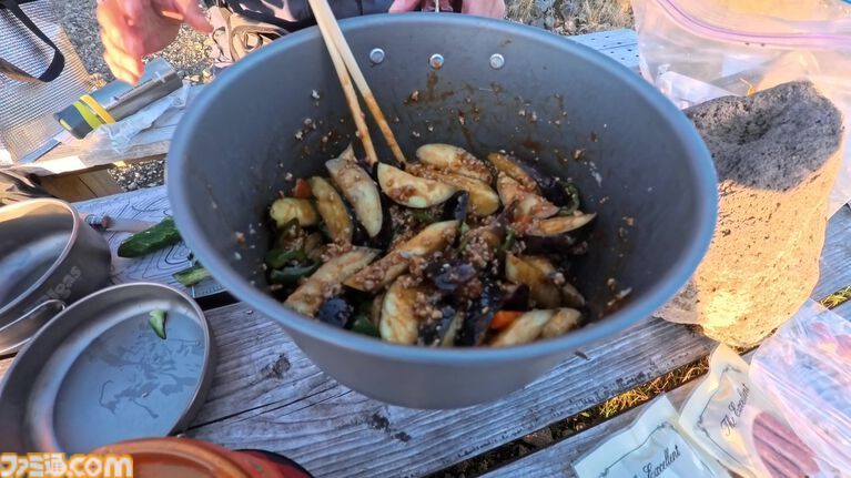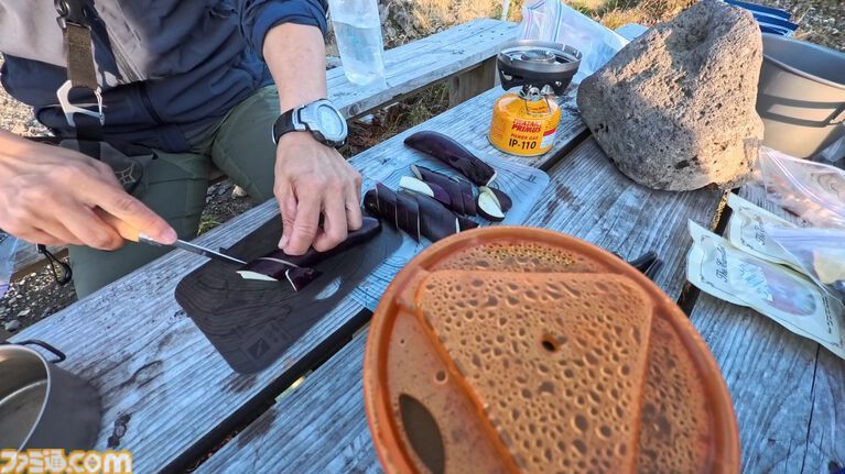 這次是在避難小屋住宿一晚、爲期兩天的登山行程,嚮導爲我們準備了晚餐。菜單居然是麻婆茄子拍黃瓜。完全沒想到能喫到熱乎乎的飯菜,筆者的情緒也因此高漲起來。