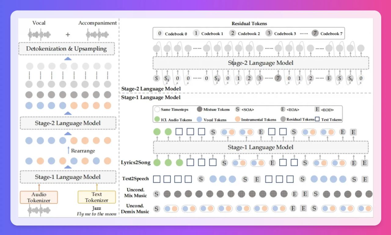 一个全新的多模态音乐开源模型,YuE具有从歌词生成高质量音乐的能力。能够生成长达5分钟的完整音乐作品,包括人声和伴奏,支持多种语言生成。