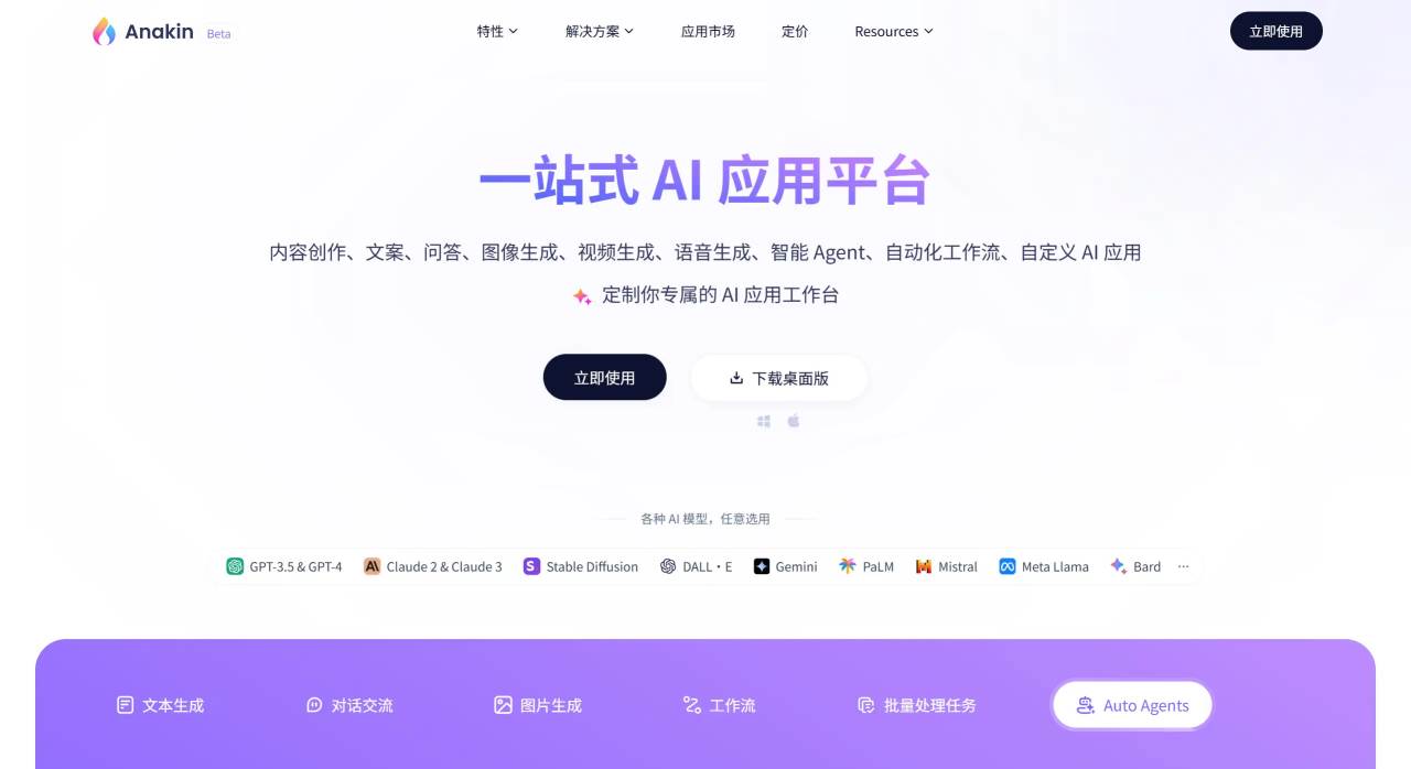 一款基于 Apache 2.0 License 协议正式开源的领先开源大模型应用开发平台,能搭建分析报告生成、知识库问答、对话、要素提取等多种大模型应用。