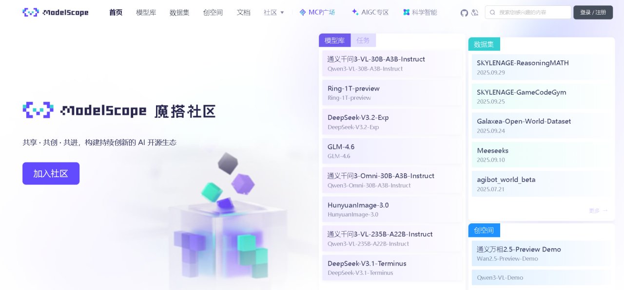 ModelScope被称为“魔搭社区”,是国内首个中文AI模型开源社区,由阿里巴巴通义实验室联合CCF开源发展委员会发起的模型开源社区及创新平台。