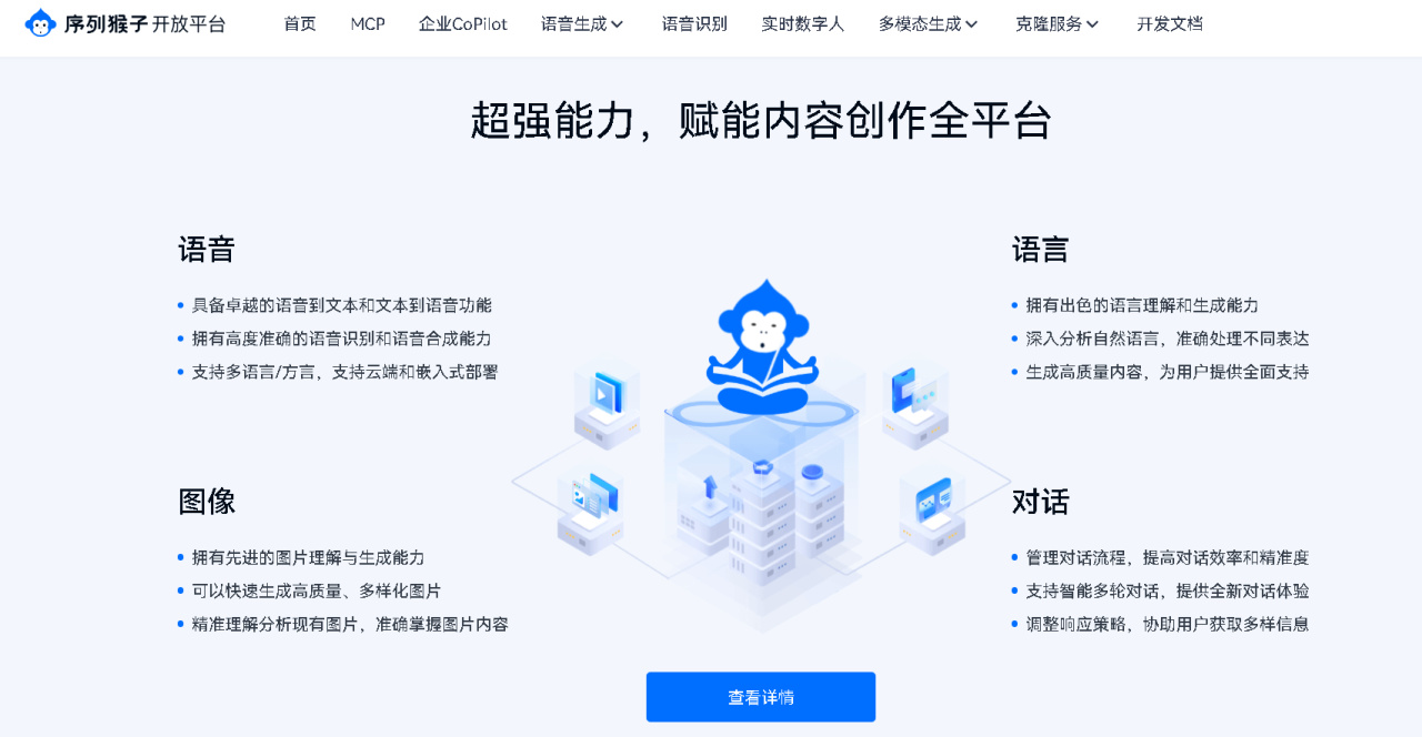 领先市场的语言驱动深度学习大模型能够快速、准确地处理语言表达,支持多种交互方式。可以快速生成悦耳语音、高质量文本、与人机互动,满足各类语音、文本和对话需求。