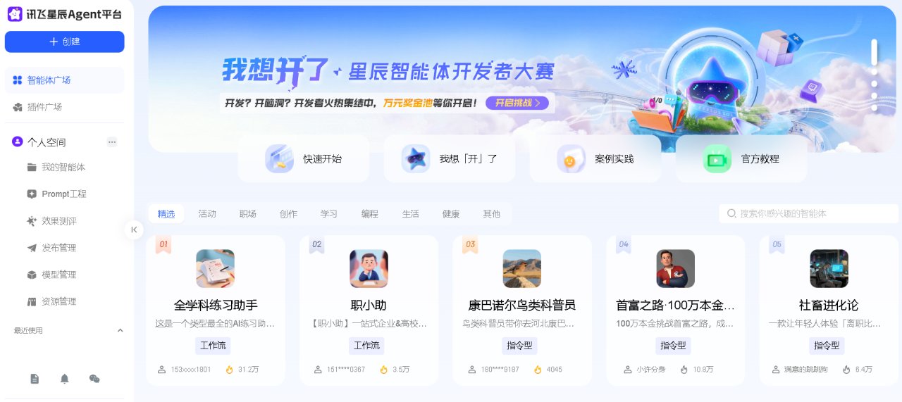 讯飞星火新一代智能体Agent开发平台,助力开发者快速搭建生产级智能体,只要面向 IT 从业者和 AI 开发者。