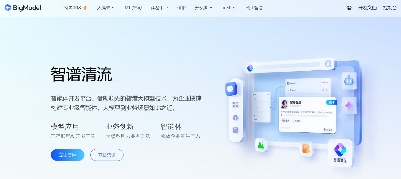 智谱AI开放平台,GPT人工智能模型,打造高效率、通用化的“模型即服务”AI开发新范式。
