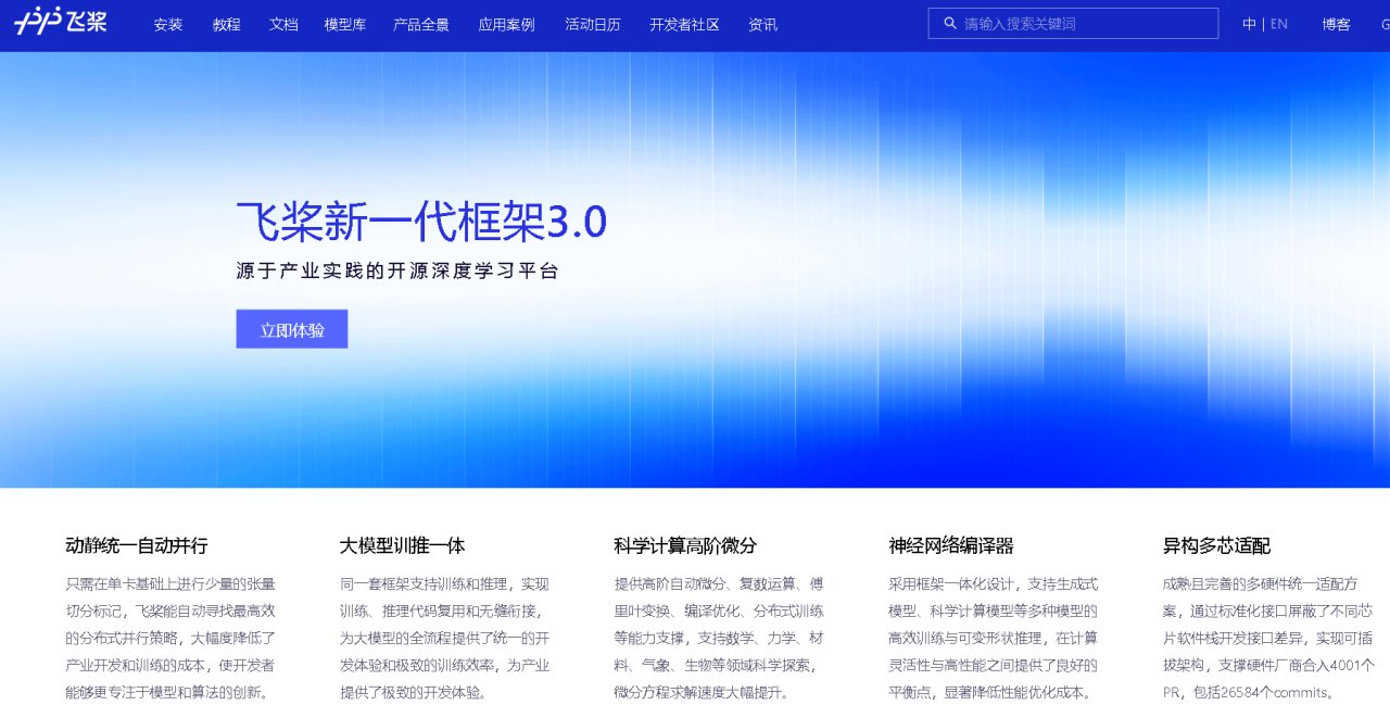 飞桨(PaddlePaddle)以百度多年的深度学习技术研究和业务应用为基础,集深度学***训练和推理框架、基础模型库、端到端开发套件、丰富的工具组件于一体,是中国首个自主研发、功能丰富、开源开放的产业级深度学习平台。