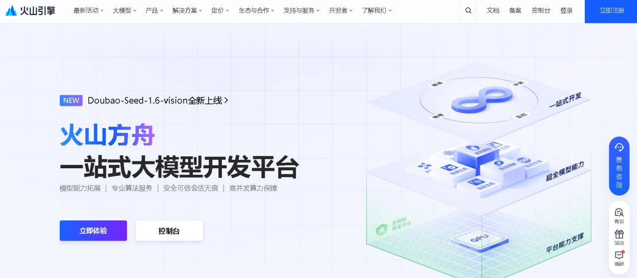 字节跳动旗下的火山引擎推出的大模型服务平台,主要面向企业提供模型训练、推理、评测、精调等全方位功能与服务,并重点支撑大模型生态。