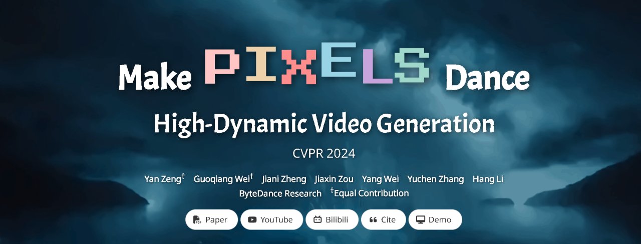 字节跳动研发的一种视频生成模型,PixelDance通过结合文本指导和首尾帧图片指导的方式,能够生成具有复杂场景与动作的视频。