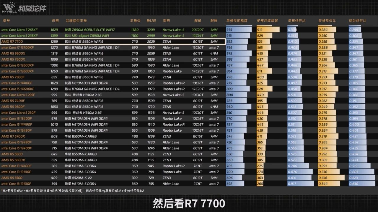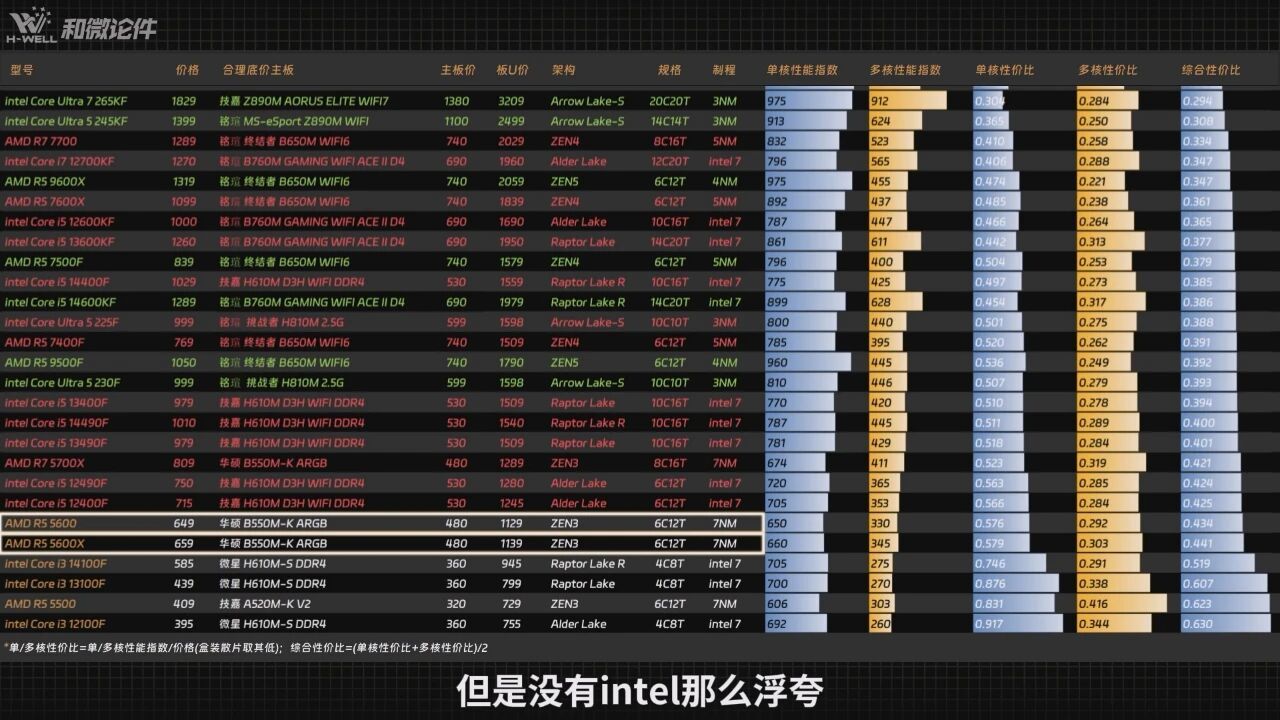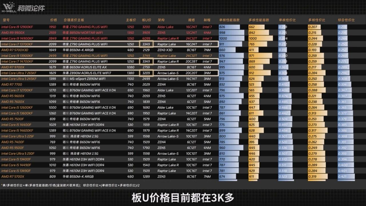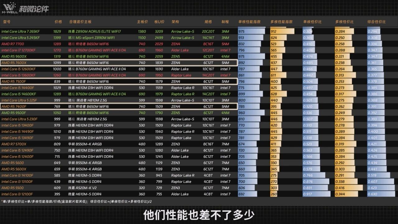 如果你是遊戲玩家,只要CPU沒有出現在這個圖中,那就不推薦購買,就算在這個圖中,也不是全都值得購買,我們利用圖表下方的算法,得出了最後一列的綜合性價比,然後將綜合性價比進行排序,得到了這種綜合性價比倒置天梯圖,從上到下,再一一進行覈驗,看看到底哪些U不值得碰。