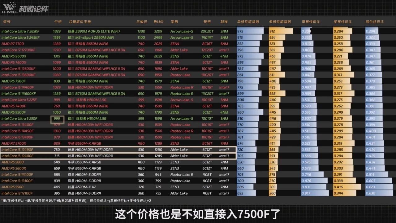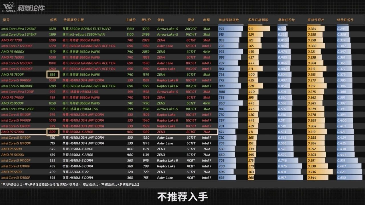 價格也伴隨intel回到了800出頭,這個價位爲什麼我不買7500F呢?不推薦入手。
