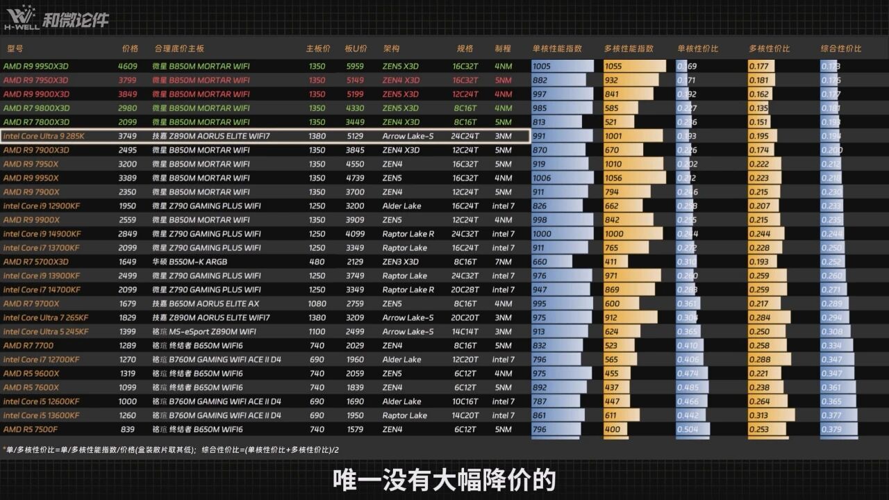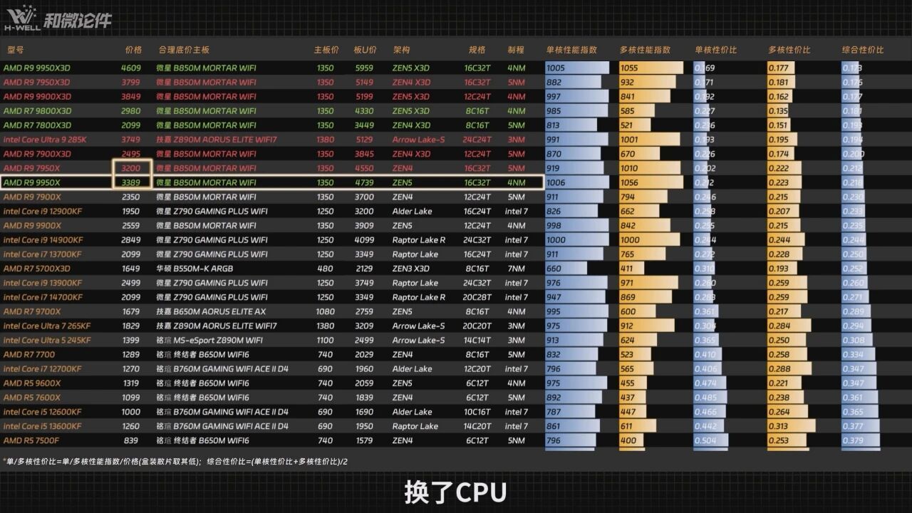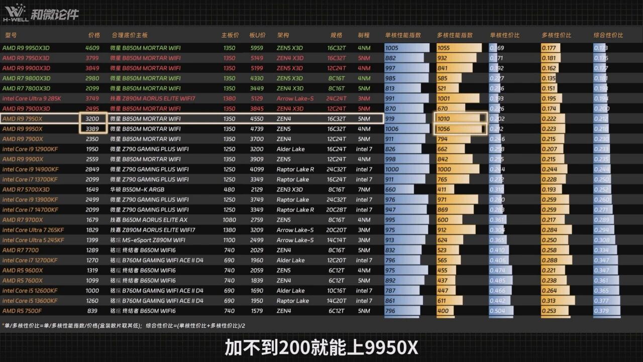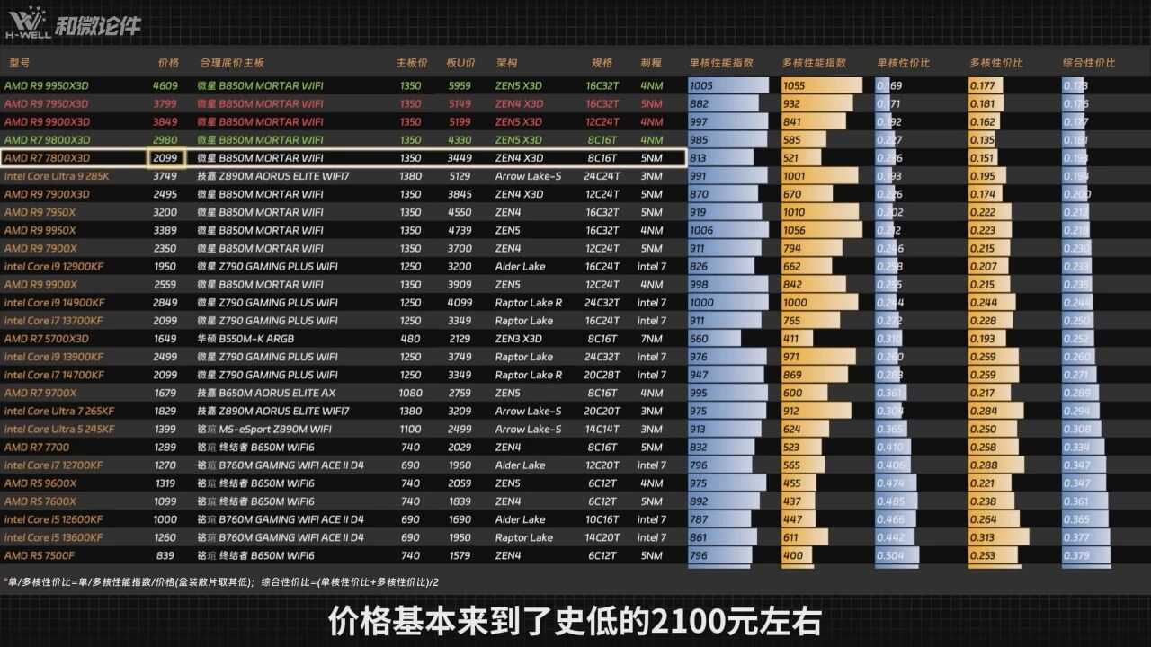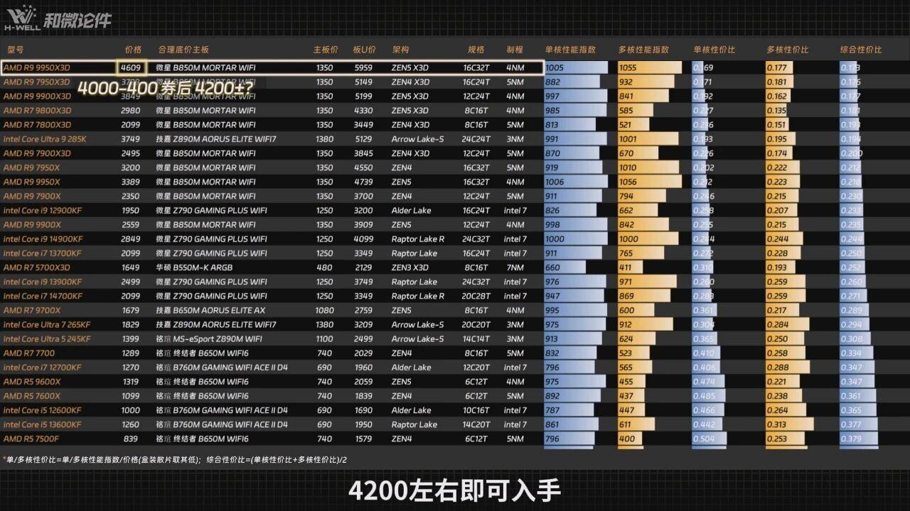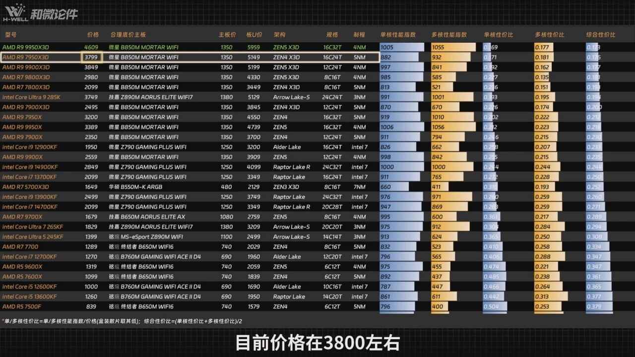 9950X3D在此性價比榜單中排名最低是因爲“大三緩”的核心優勢未在表格中體現。 它作爲AMD的旗艦型號,同時登頂遊戲與生產力性能巔峯,沒有直接競品。目前價格已從首發5499元降至約4600元,若雙11能用券則可逼近4200元作爲綜合性能最強的CPU,是預算充足或遊戲/生產力雙修用戶的終極選擇。