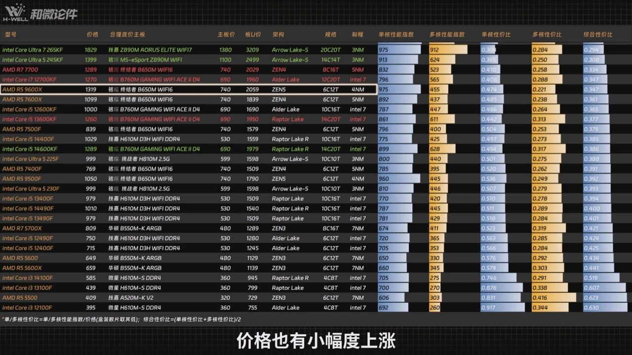 CPU這邊,intel近期將酷睿Ultra 200S系列的價格下調了不少,不過在這同時,將12、13、14代等CPU的價格進行了大幅度上調,玩家沒得選,只能上200S系列AMD這邊價格受到市場影響,價格也是上來了不少,所以近期入門CPU市場的價格很是不美麗。
