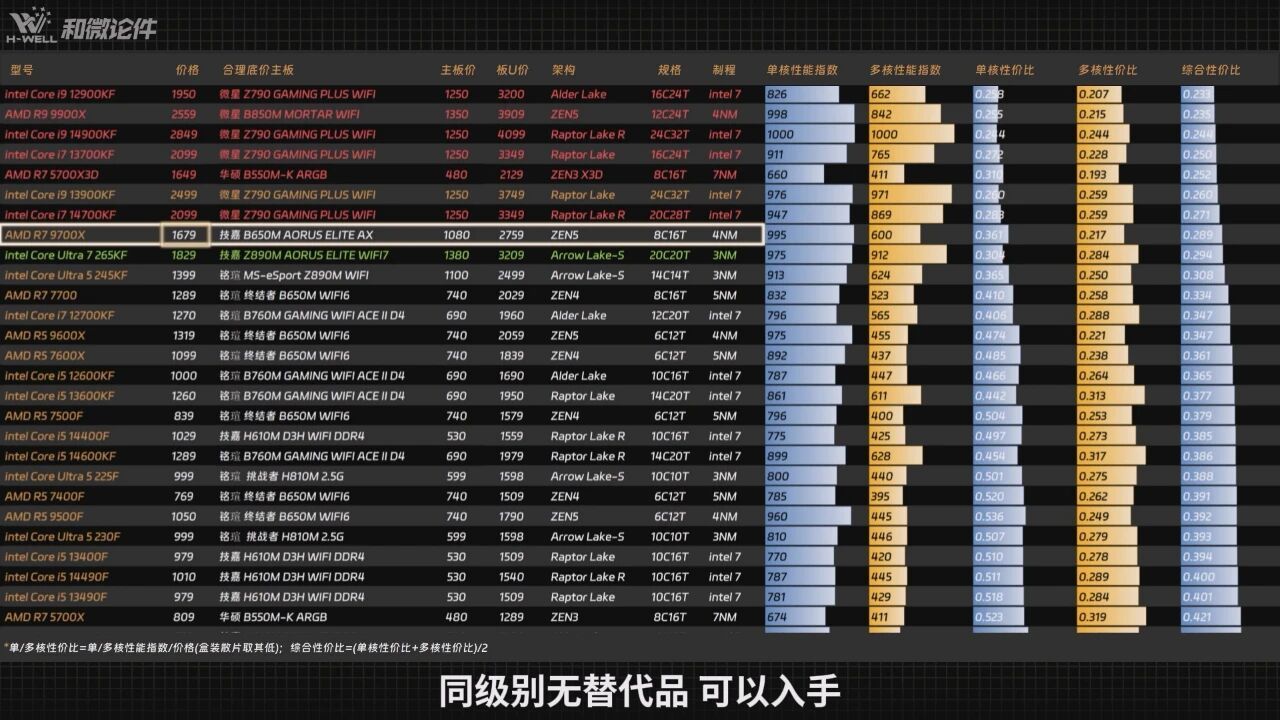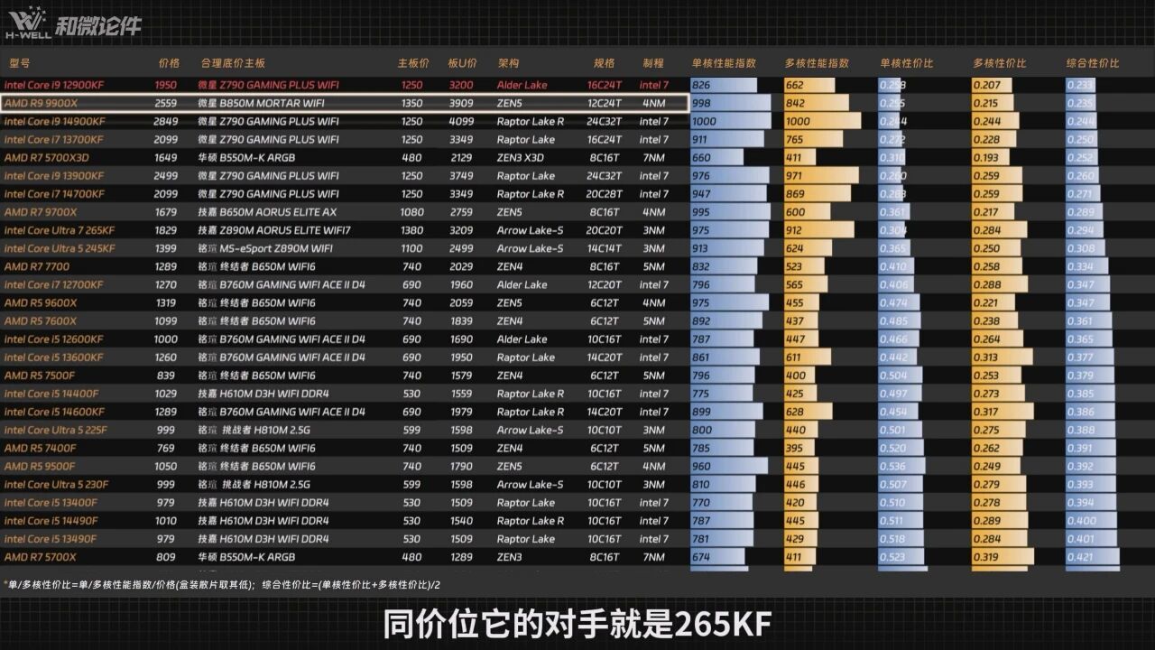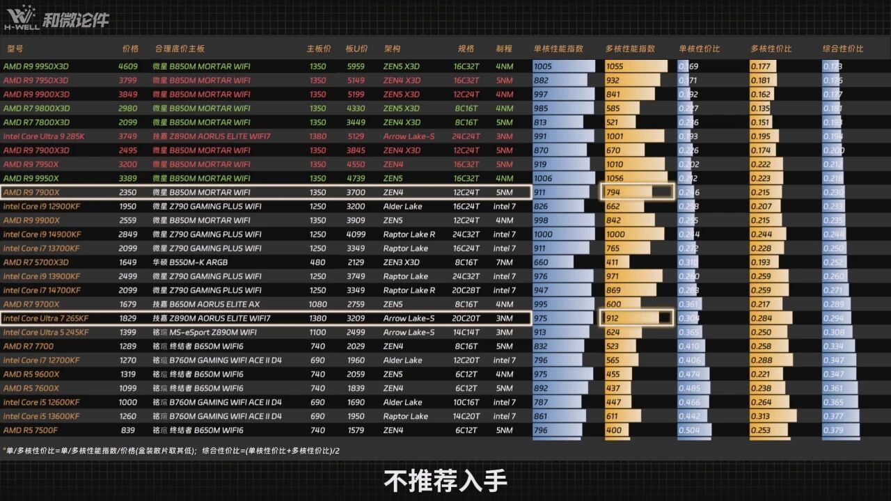 主要面向生產力用戶,但在同價位競品中性價比明顯不足:對比Intel 265KF時性能價格均處於下風;遊戲性能也受其雙CCD 6+6核心結構拖累,表現不盡理想。綜合不推薦入手。