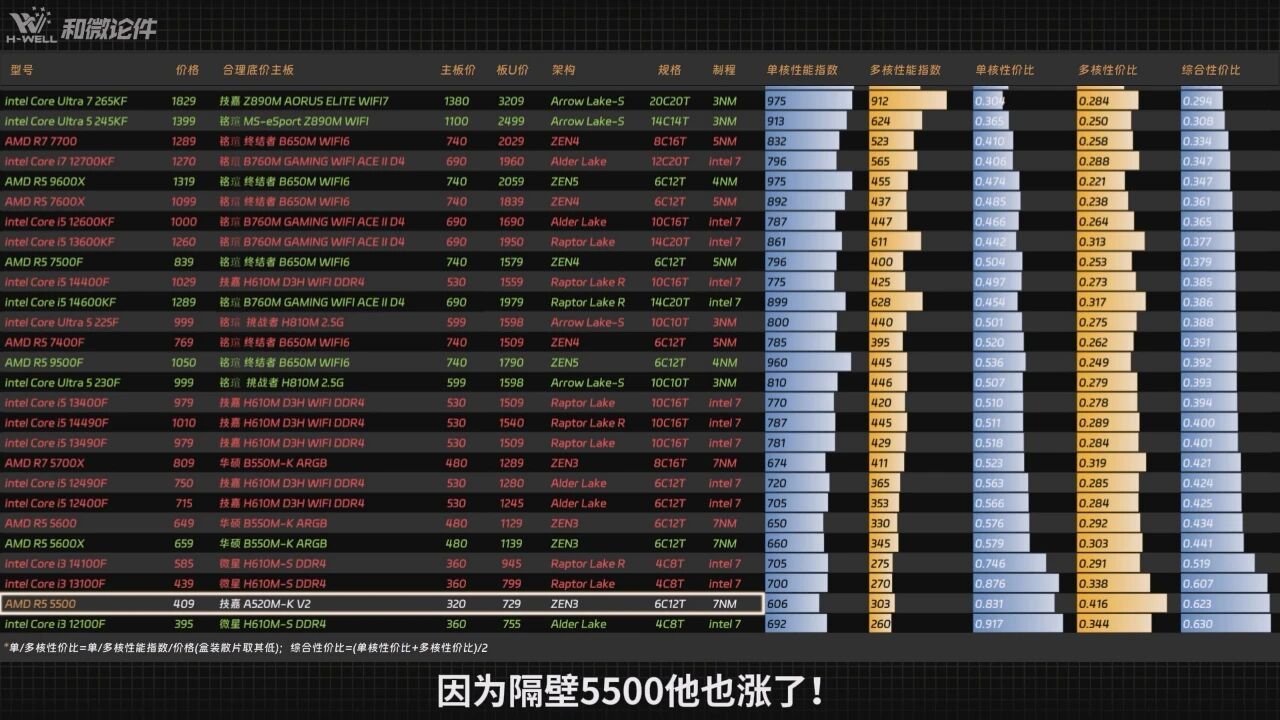 5500他也漲了!5500雖然補足了121 131 141這幾顆U線程數少的缺點,但是不支持PCIE4.0也是硬傷,但他們都這個價格了,大家只能根據自己的需求二選一咯!