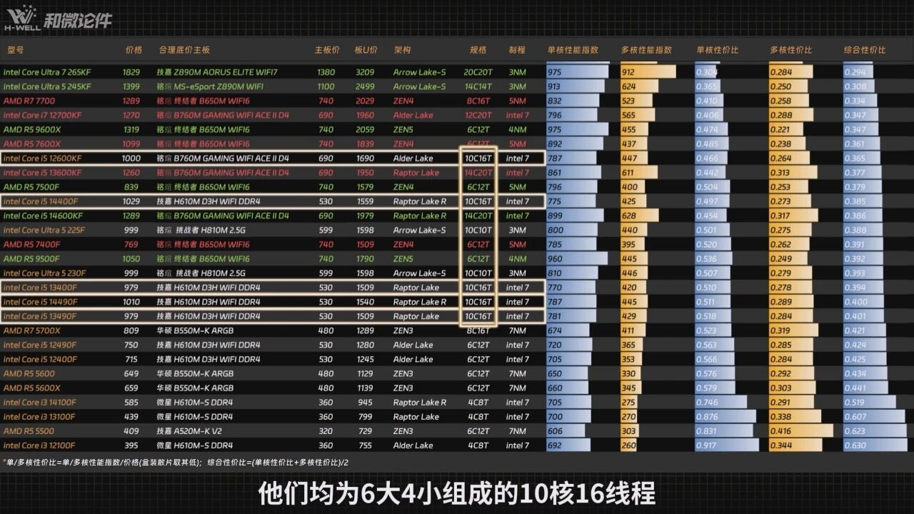 均爲6大核+4小核的10核16線程配置,近期價格出現大幅異常上漲(如13400從600元漲至近千元)。 考慮到這幾款處理器性能差距有限,當前千元預算下:若主要玩遊戲建議選擇AMD 9500F,若需多核性能則Intel 230F是更明智的選擇。