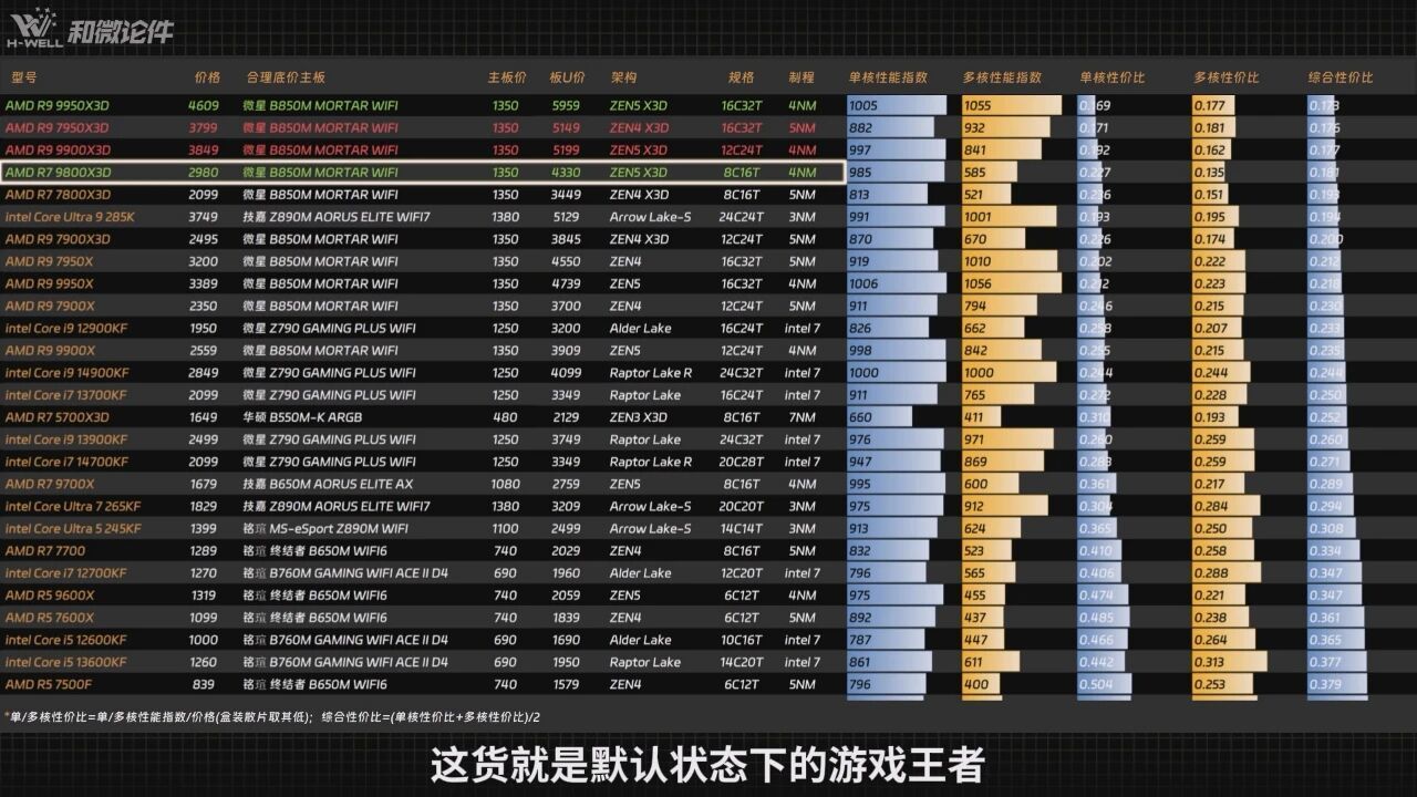 在當前市場中是默認狀態下的“遊戲性能王者”,只要9950X3D不自行關閉一半CCD,其遊戲表現便無人能及。 目前價格約3000元,雙11期間疊加優惠券後有望進入2700元區間,十分值得遊戲玩家入手。