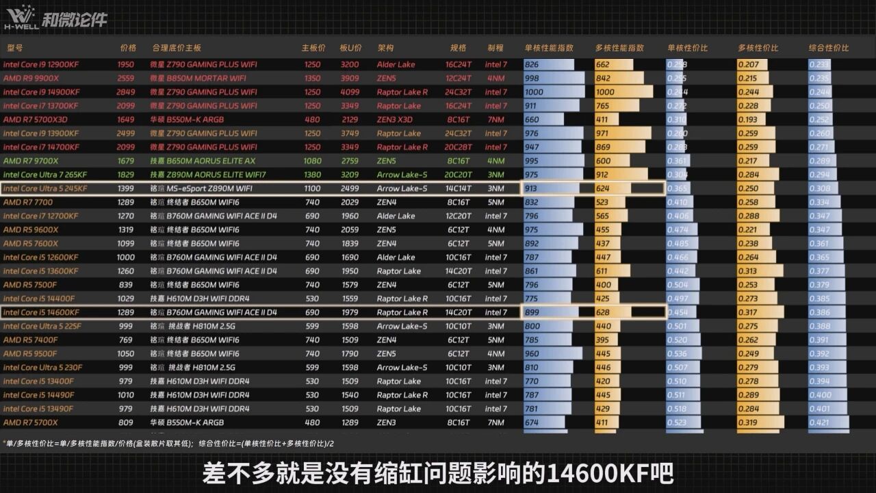 245KF作爲14600KF的繼任者,性能表現基本持平,核心改進在於徹底解決了前代存在的“縮缸”風險。 目前該價格已出現顯著下調,是注重穩定性的性價比生產力用戶的理想選擇。
