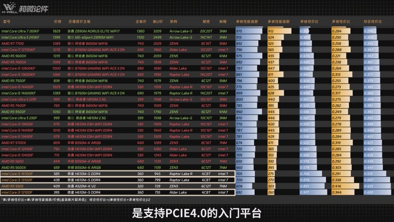 他們互爲馬甲,12100F又是成功保住了性價比之王的寶座,是支持PCIE4.0的入門平臺,只有12100F可以入手。