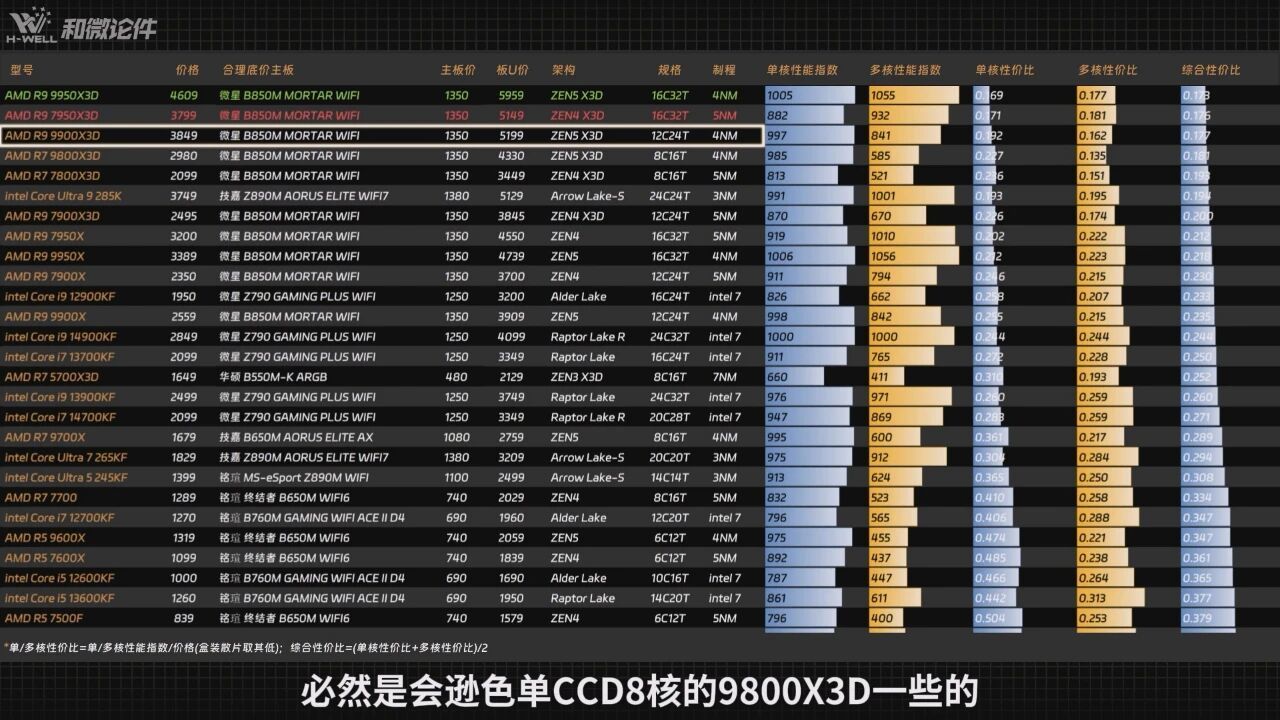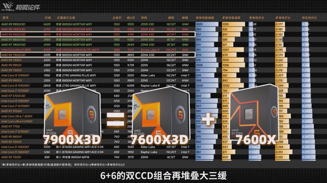 跟9900X3D不推薦入手的原因一樣,6+6的雙CCD組合再堆疊大三緩,可謂是遊戲、生產力、性價比用戶三方都不討好。