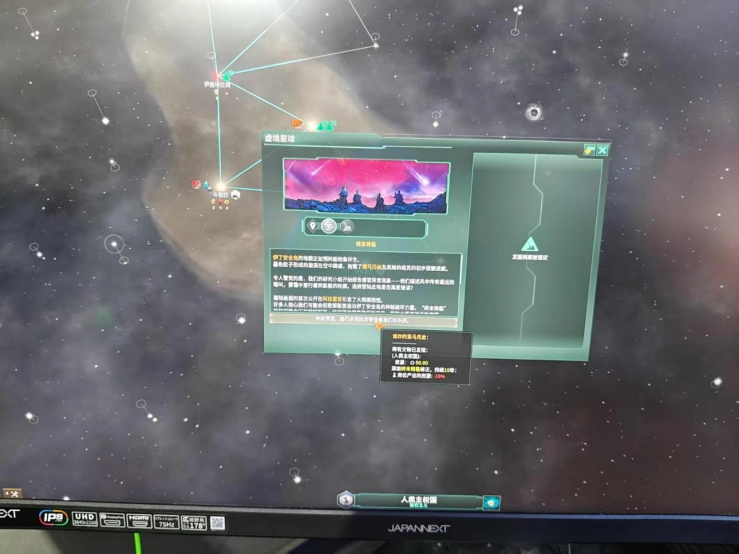 於是前不久,我們迎來了《羣星》的最新DLC“虛境幽影”,這一DLC大幅重做了原本的靈能飛昇,將局勢等更爲現代化的設計引入了靈飛流程中,全盤改進了虛境抽卡系統的同時,新增了“靈能光環”這一強大的Buff。玩家們將能在這一DLC中深入虛境,與名爲“超主”的高維存在們培養好感度並簽訂契約,以付出部分犧牲爲代價來換取獨特的增益——例如,大超主“世界之喰煞”會不時吞噬你的人口,但也會大幅增加你的海軍容量、艦船射速等軍事屬性;而上超主“虛空之低語”則會誘惑你背叛現有的超主,併爲你提供大量的科研加成……總體而言,靈能飛昇的可玩性得到了顯著提升。