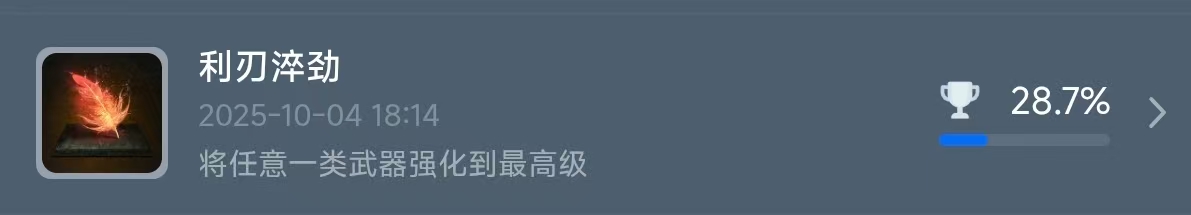 全武器成就,一共应该是29把,跟着这篇站内大佬帖子收集就行: 【明末:渊虚之羽】全武器收集攻略