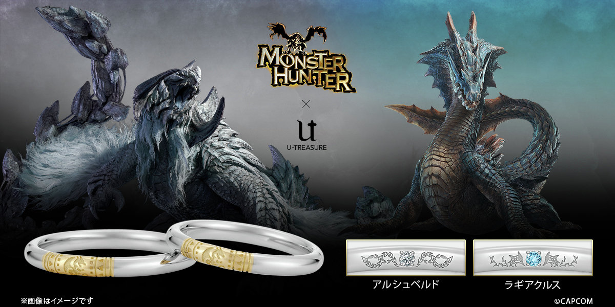 今日,珠宝饰品品牌「U-TREASURE」宣布,与《怪物猎人》联名婚戒新增两款款式(锁刃龙和海龙)。