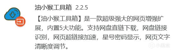 【油小猴工具箱】是一款超级强大的网页增强扩展,内置5大功能。支持网盘直链下载,网盘链接识别,网页超链接加速,星号密码显示,网页文字清晰度调节。