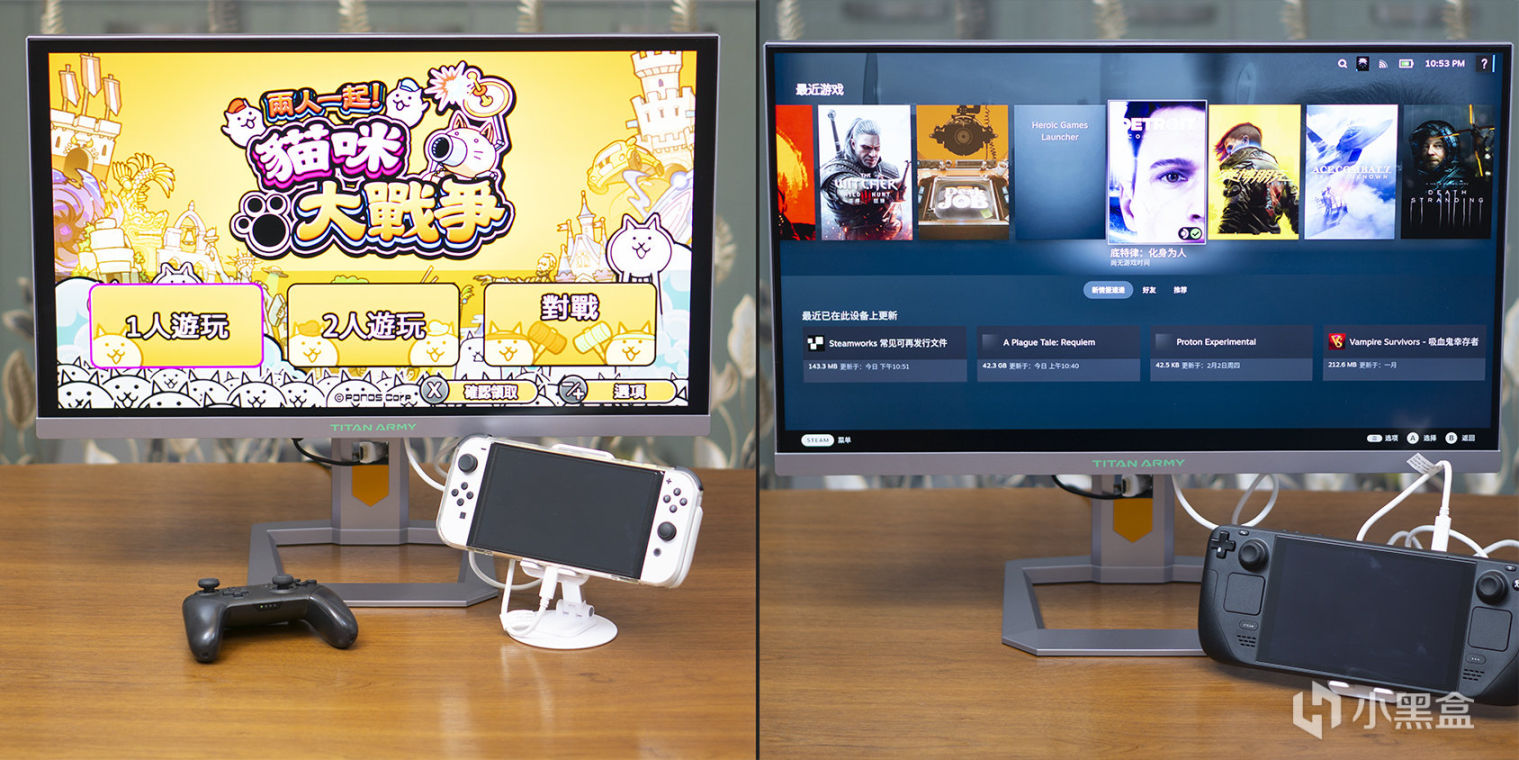 由於支持PIP和PBP,我們可以將兩臺設備在顯示器中進行同步顯示。兩個小夥伴,可以一人爬格子,另外一個人小窗口馬里奧,也算兼顧娛樂與生產力了吧!