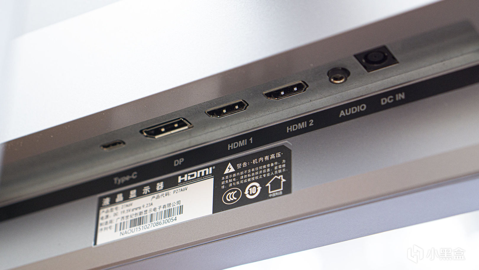 後部接口分別爲全功能滿血90W TYPE-C、DP1.4(支持DSC)、兩個HDMI 2.1和一個3.5音頻口和電源接口,可以讓我們在PC、PS5、Switch等設備間自由切換。