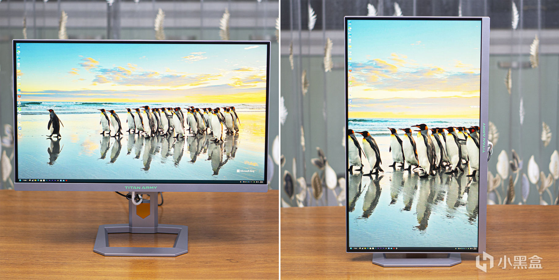 泰坦軍團P27A6V支持橫屏及豎屏的自由調節,稍微用力就可以實現屏幕的橫豎變化。此外,它還能夠在菜單中開啓重力感應,可以做到畫面自由切換。