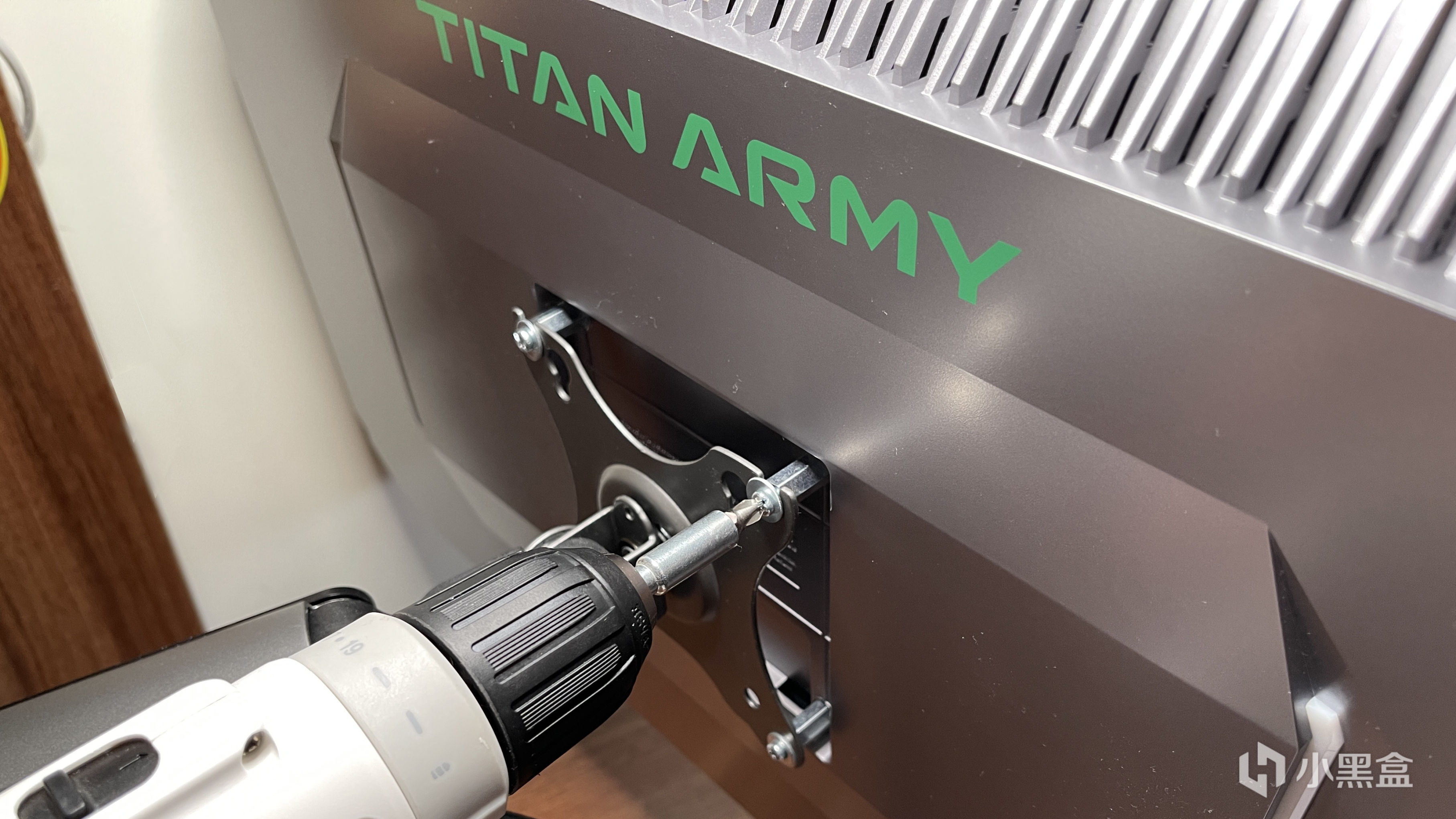 需要提醒小夥伴們的是,由於泰坦軍團P27A6V是個27寸的顯示器,也有些分量,因此在上支架安裝時候,最好能夠有人從旁輔助。