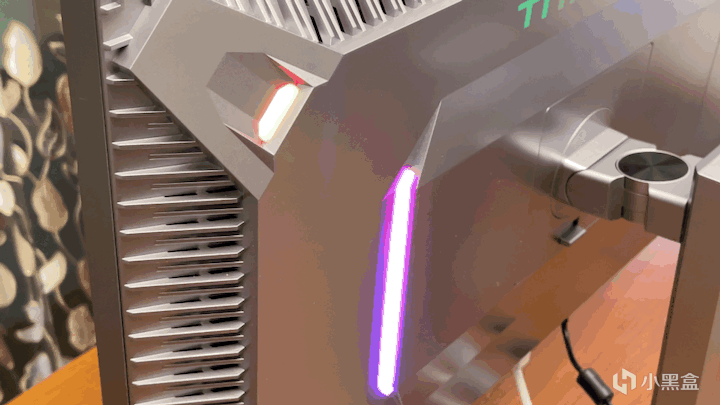 顯示器的背面更突顯了科幻的機甲風格,充滿了肌肉力量感的鰭片條紋,配合着從四角及中部RGB散發出的幻彩燈光,瞬間機甲蒞臨的感覺!