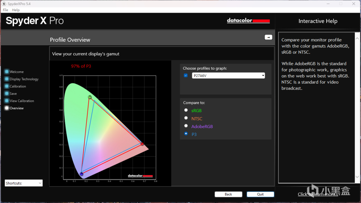 通過蜘蛛測試,我們可以看到,它的DCI-P3色彩覆蓋達到了97%、Adobe RGB色彩覆蓋達到了98%、sRGB色彩覆蓋達到了100%。其中Adobe RGB比廠家測試低了1%,sRGB高了1%,應該也是由設備及測量誤差造成的。