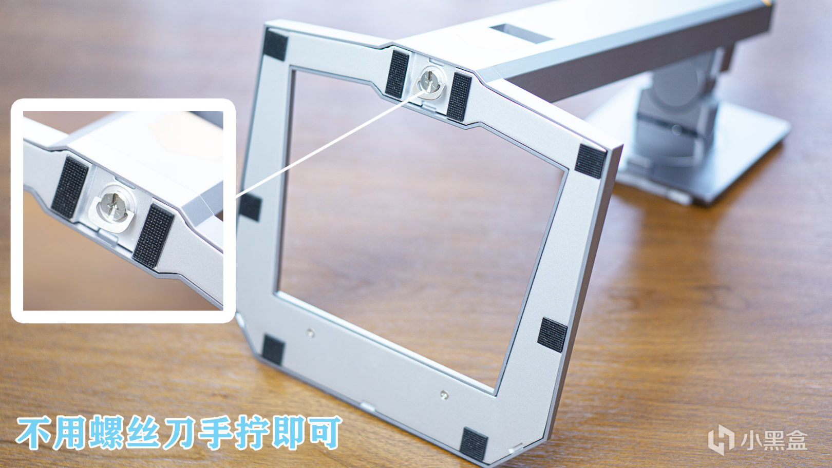 由於它採用了便捷的快裝模式,只要對準孔位,輕輕按壓就可以實現支架的安裝。整個過程毫無難度,不需要女漢子,即便是擰不開瓶蓋的纖纖玉手也可支棱起顯示器。