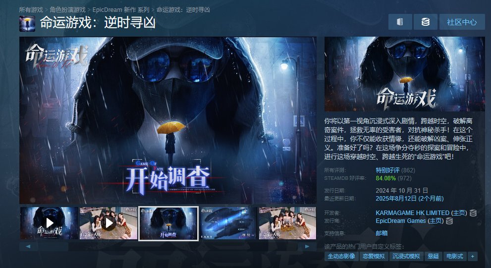 遊戲既有跌宕起伏的懸疑破案的情節,也有戀愛相關的劇情支線,所以一個遊戲就能滿足兩個人羣;50多種結局,百種分支選擇,全結局流程需要4到6小時才能達成,這麼大的體量,也只需要一張電影票錢,遊戲內的塔羅牌系統還能幫助玩家回血,體驗而言,《命運遊戲》在互動類遊戲中,質量能名列前茅。