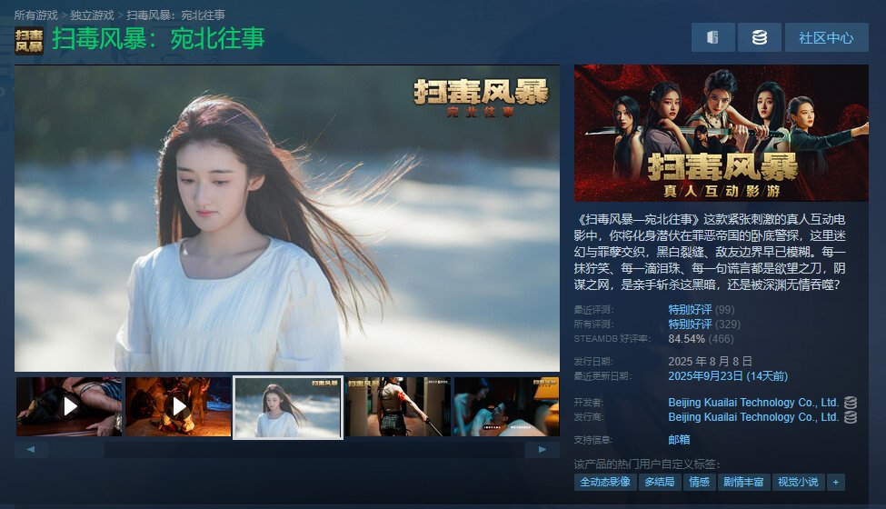 作爲熱播國產掃毒網絡劇《掃毒風暴》的授權衍生作品,《掃毒風暴:宛北往事》利用電視劇角色的身份,製作了一部對電視劇原作劇情影響不大的前傳作品。雖然這款遊戲的立項本質上更像是製作組想借原作熱度進軍影遊賽道的產物,但遊戲本身不論是題材還是內容都足以吸引玩家的注意力。總體來說,比起製作完善且機智豐富的互動式影視遊戲,《宛北往事》更像是一款普通的互動劇,只不過劇情依舊有可玩之處罷了。