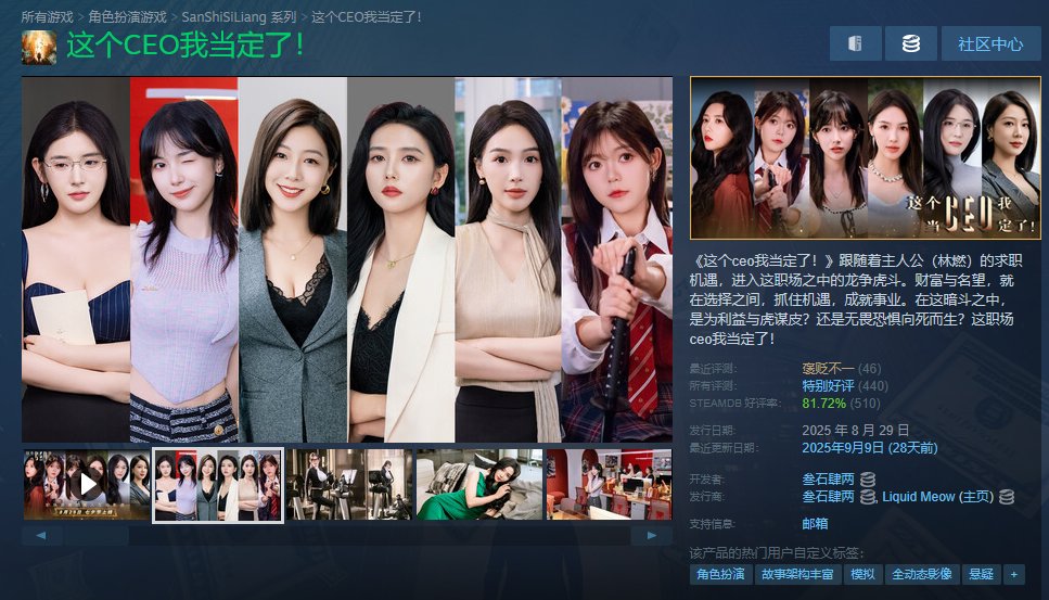 作爲職場題材互動影遊,《這個CEO我當定了》在題材選擇上頗具勇氣。它跳脫“爽文”套路,聚焦派系鬥爭、繼承糾紛等現實議題,Joanna的暗線佈局、方總的投毒危機等設計頗見巧思。然而,劇情樹的稀疏和音頻問題拉低了體驗,部分職場鬥爭刻畫略顯兒戲。林燃的晉升之路充滿算計,女角色們或成棋子或爲工具,連葉靈溪的虎牙萌感都成了苦澀中的微甜。想體驗真實職場?它做到了。值得推薦,畢竟,真實比“爽”更難得。