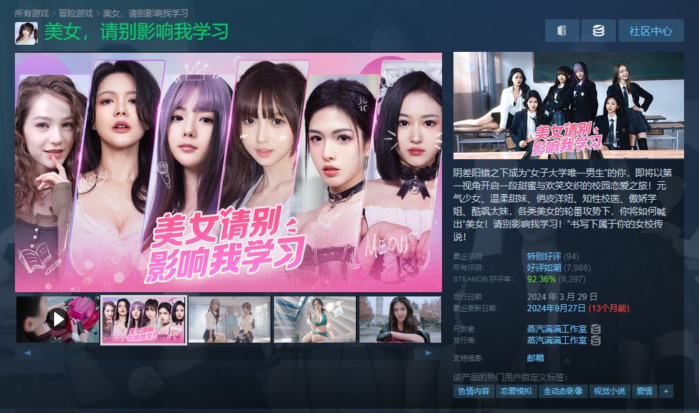 一款校園題材的戀愛模擬全動態真人互動遊戲,初見就被其開頭影片所吸引,劇情講述的是男主林凡偶然之間被女子大學錄取併成爲該校唯一男生,被美女們包圍的他還能好好學習嗎?本作爲章節式劇情,通過第一視角與美女親密互動,各色美女,都任你選擇,在對話環節選擇不同選項,提升對象好感度以通向不同結局劇情分支。某些選項有着物品限制,在場景尋找特定物品纔可解鎖隱藏劇情。打破傳統戀愛體驗,多樣化結局等你探索。