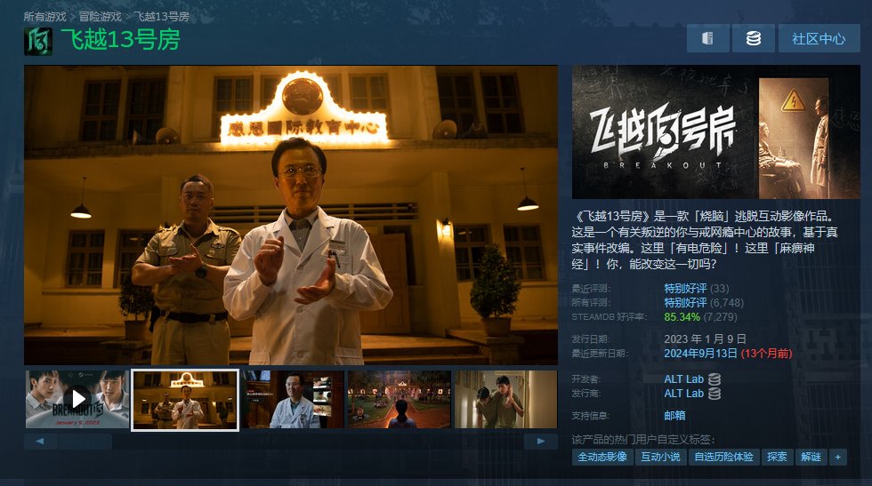 《飛越13號房》是一款現實題材懸疑互動影像作品。遊戲中你將扮演一位家人眼中終日迷網絡的網癮少年,於是被送進了號稱治癒了無數人的網癮矯正中心,在這裏你將接受禁閉、體罰、電擊等一系列特殊的治療方案的。遊戲一共八大結局,最終你將以怎樣的姿態回家呢。網癮治療是前幾年社會熱門討論話題,遊戲製作組前期走訪了大量的網癮學校做調研和訪談,最終希望通過遊戲呈現促成更多的相互理解。