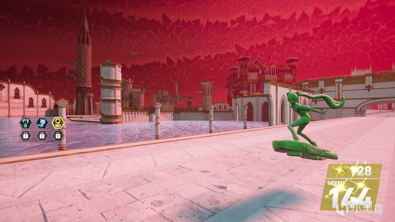 另一方面,本作的创新则更多,最首要的就是作为标题的《交叉世界》,本作的一般模式都是三圈制,但是在选定赛道之后,其中的第二圈会出现变化——在第一圈排行首位的车手可以二选一决定接下来通过传送门进入的“交叉世界”,也就是直接接入另一个地图;而第三圈则会重新回到原本的地图,但是此时地图也会出现变化,这意味着你经历的三圈地图总是有所不同,而即使你熟悉最初选定的地图,随机化的第二圈也能带来更多惊喜。