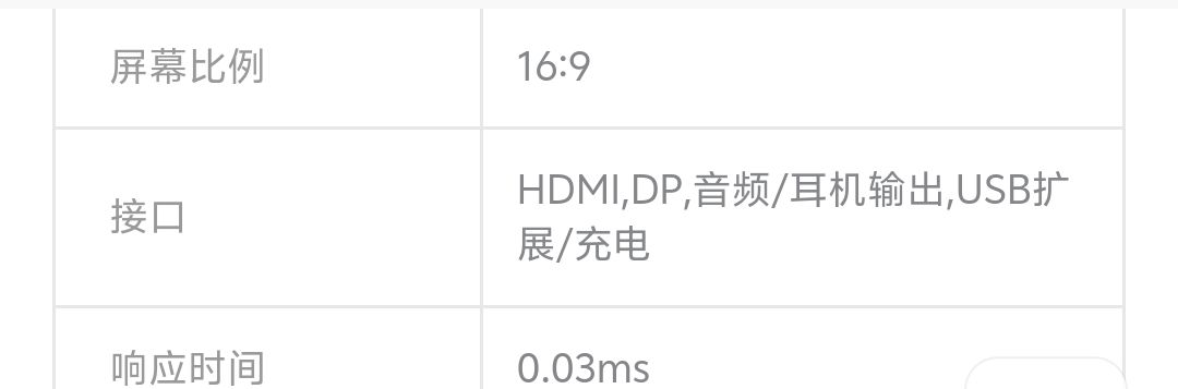 我们先以这台显示器接口为例。我们可以看到,根据商品详情描述,这个显示器上有HDMI、DP两种主要连接口,所以你的笔记本也起码得有包含与显示器相同连接口的一种或以上的接口。