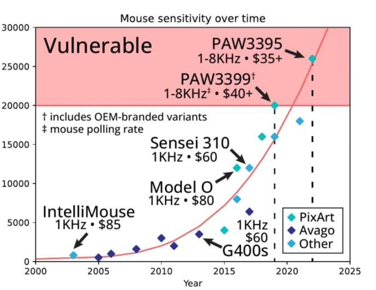 加州大学欧文分校研究团队近日公布了一项名为“Mic-E-Mouse”的研究成果,揭示高性能游戏鼠标存在潜在安全漏洞。这些DPI达到20000或更高的鼠标传感器,能够捕捉人声通过桌面产生的微小振动,并在AI技术的辅助下还原成可识别的语音信息。