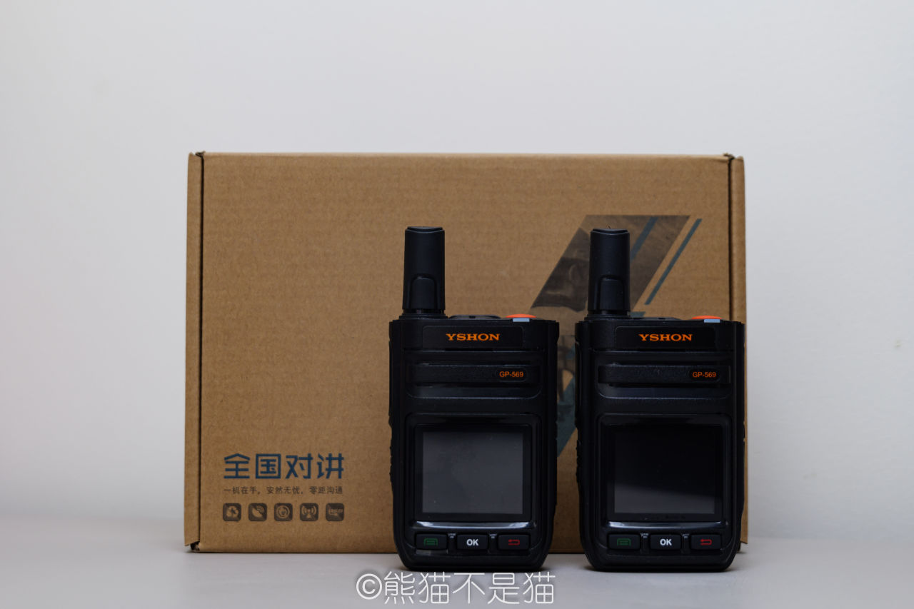 同时熊猫发现粉丝里还有不少玩对讲机的,甚至有人玩公网对讲机。不得不说,玩 NAS 的都是大神啊。既然粉丝都晒出来了,那我也得把我的宝贝拿出来亮亮。公网对讲机我也有,一对来自易信的 GP - 569。