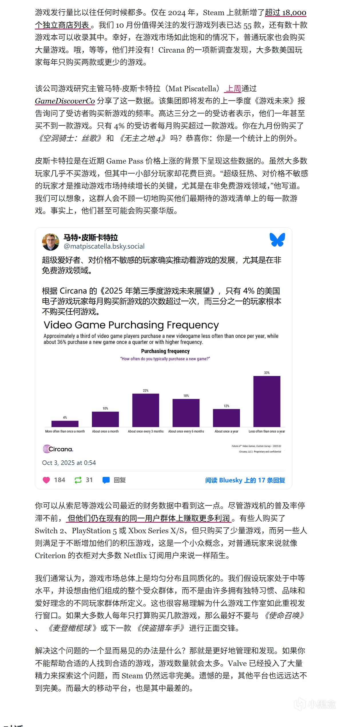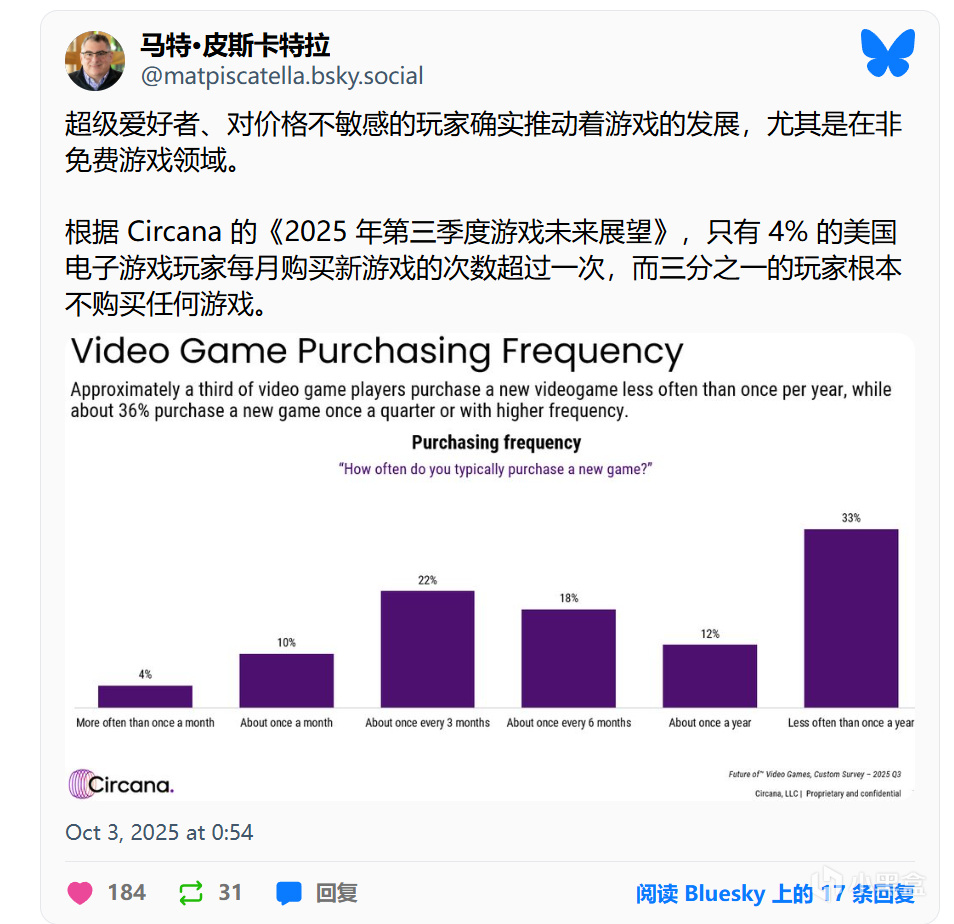 该公司游戏研究主管马特·皮斯卡特拉(Mat Piscatella) 上周通过 GameDiscoverCo 分享了这一数据。