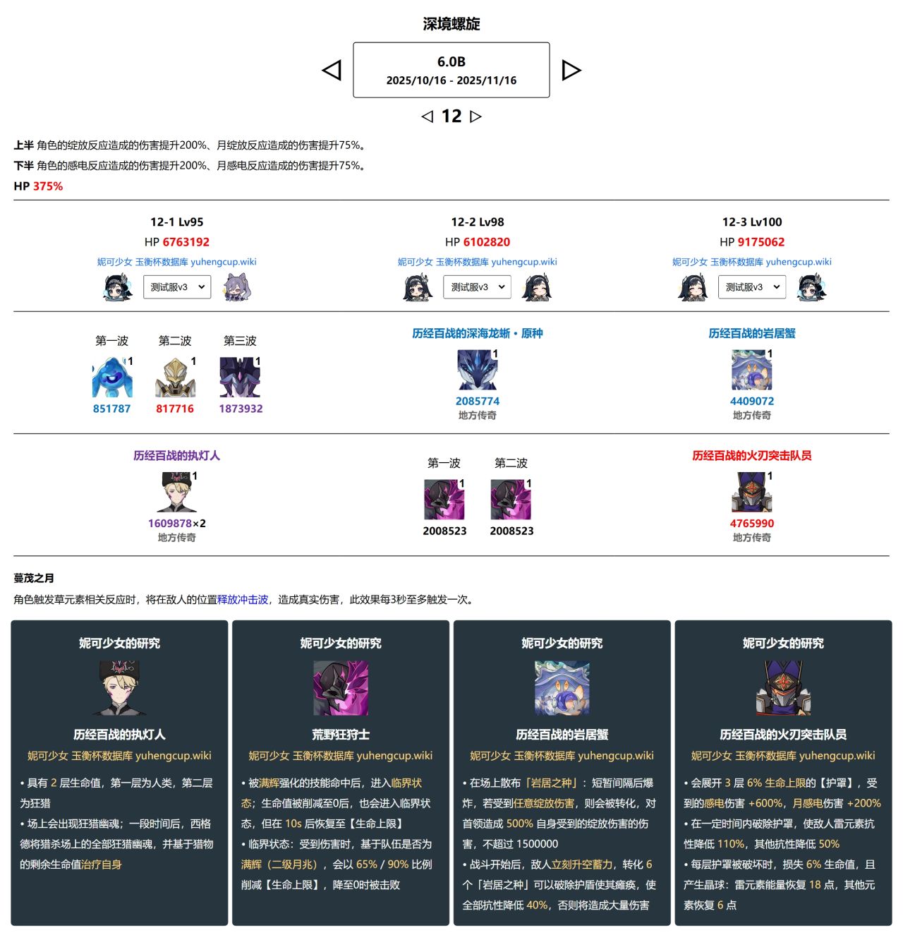 (2)非满辉配队:重点是DPS,推荐高爆发队伍,可在临界状态打出绝大多数伤害的队伍。12-3下半可以直接灌伤害,因为是血量盾。