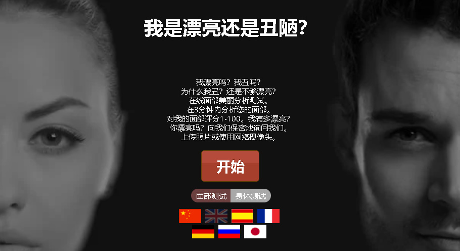 一个在线面部分析及颜值打分网站,用户通过上传照片或直接用摄像头参与,3 分钟内就能出结果。测试会给出 1 到 100 分的面部评分。