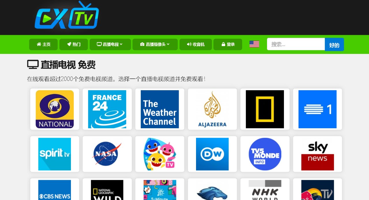 一个能免费看全球电视频道和实时摄像头的网站。CXTVLive上面有超过 2000 个免费电视频道,还有 374 个实时摄像头内容。