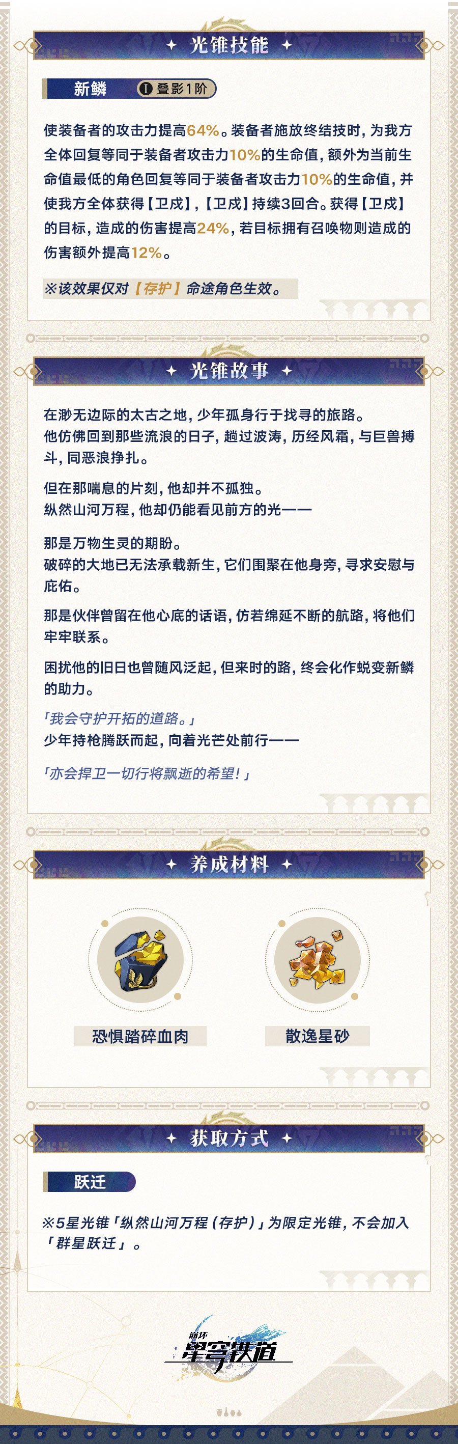※5星光锥「纵然山河万程(存护)」为限定光锥,不会加入「群星跃迁」。