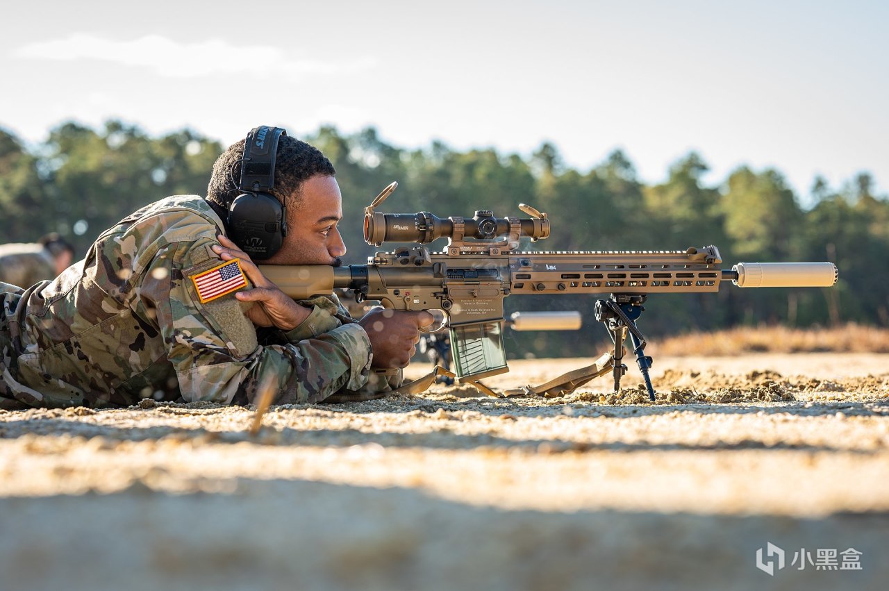 精确射手装备一把M110A1 7.62mm半自动步枪,它基于HK公司的HK417,装备Geissele的导轨护手,两脚支架和消音器,瞄具为近些年大火的西格绍尔1*6可变光学瞄具,有效射程800m,主要负责狙击手的部分工作,以及补充步枪和机枪之前的火力空白。