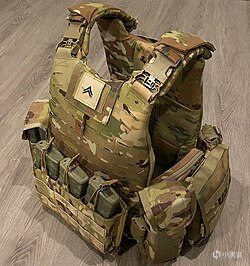 防弹衣是模块化可扩展背心(MSV),空重2.3公斤,最大满载11公斤。可根据任务需求配备多种防弹插板。