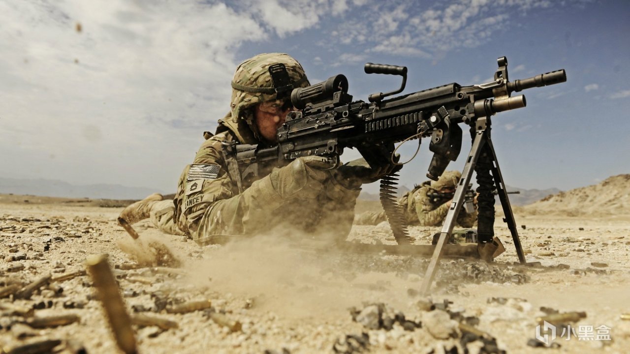 机枪手装备FN公司的M249班组机枪。部分火力班组会装备火力更强但更重的M240通用机枪。有效射程1000m,瞄具也是ACOG和ELCAN公司的M145可变光学瞄具,以及装在侧导轨的步枪同款激光指示器。