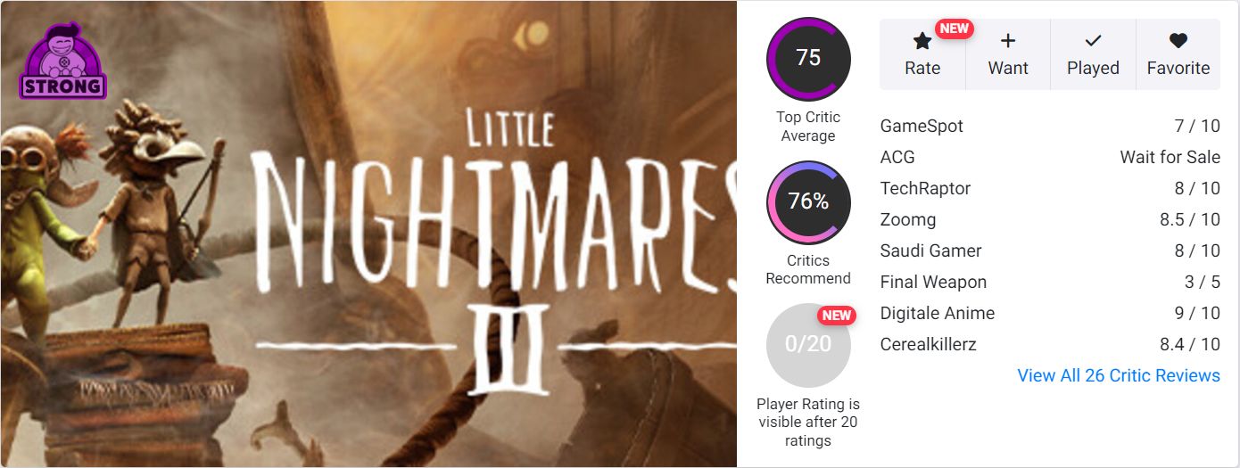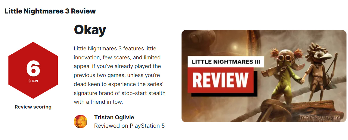 《小小梦魇3》创新不足,恐怖元素也大打折扣。如果你已经玩过前两部作品,除非你执意要和朋友一起体验该系列标志性的“走走停停”式的潜行玩法,否则本作很难带来新鲜感。